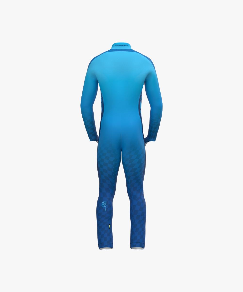 Rennanzug aus bi-elastischem, atmungsaktivem, winddichtem und pillingfreiem Gewebe. Das Anzugmodell wurde unter Berücksichtigung der Positionen entwickelt, die der Athlet im Rennen einnimmt, und garantiert eine hervorragende Körperanpassung sowie eine hohe Elastizität für maximale Bewegungsfreiheit in allen Positionen. An der Vorderseite befindet sich ein Reißverschluss, der das Anziehen des Anzugs erleichtert. Am Beinabschluss ist innen ein rutschfestes Silikongummi angebracht, das dem Anzug einen besseren Halt am Skischuh ermöglicht. Im Anzug befindet sich eine Skipasstasche. JUNIOR-GRÖSSEN: 8-14; SENIOR: XS-XXL