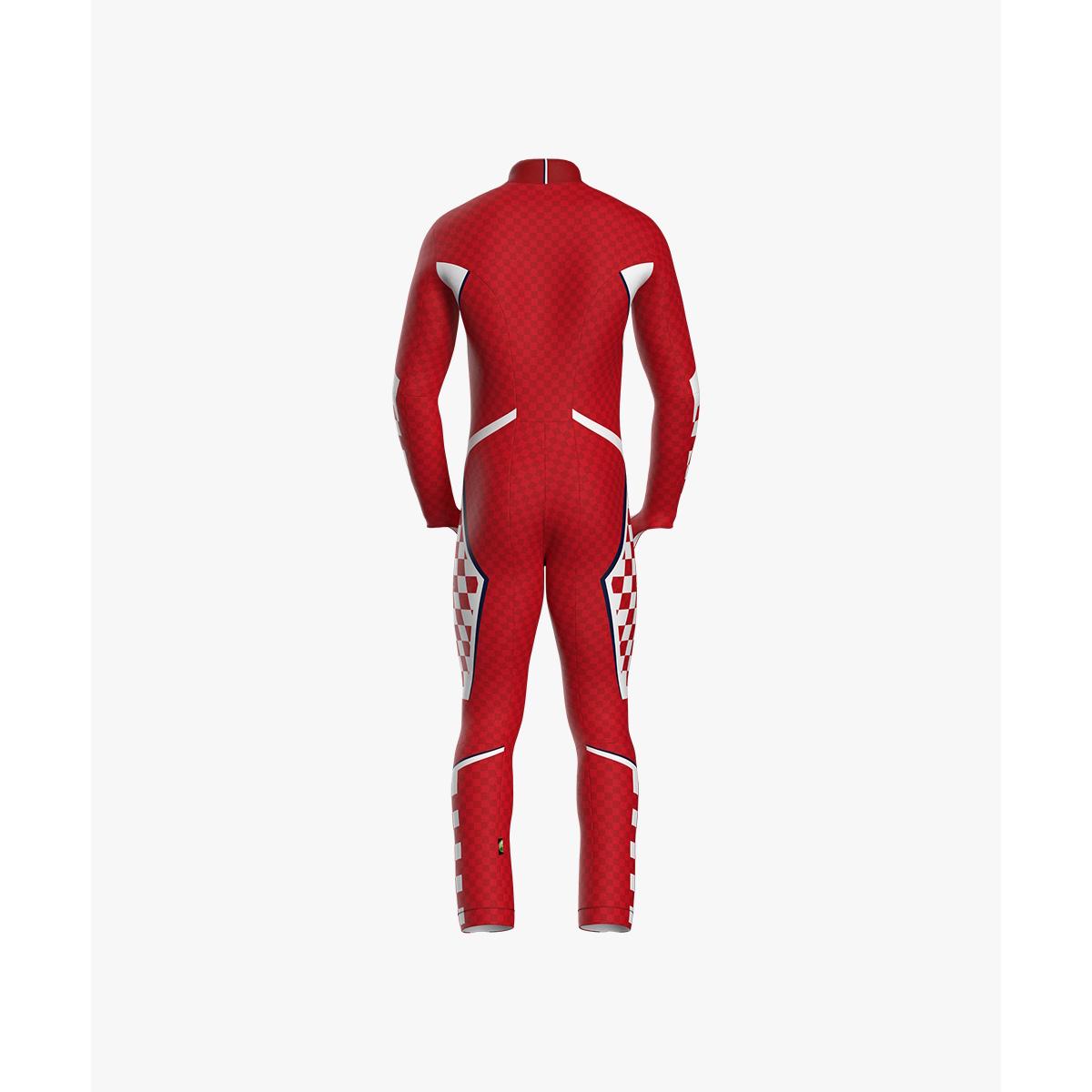 Race suit made of bi-elastic, breathable, windproof and anti-pilling fabric. The design of the suit has been developed considering the positions assumed by the athlete during the race, ensuring an excellent fit, high elasticity to allow maximum freedom of movement in all positions. A front zip facilitates entry into the suit, and an anti-slip silicone elastic is applied inside the bottom of the leg to allow the suit to adhere better to the boot. The suit includes a ski pass pocket. SPEED FABRIC: smooth fabric, not brushed on the inside.