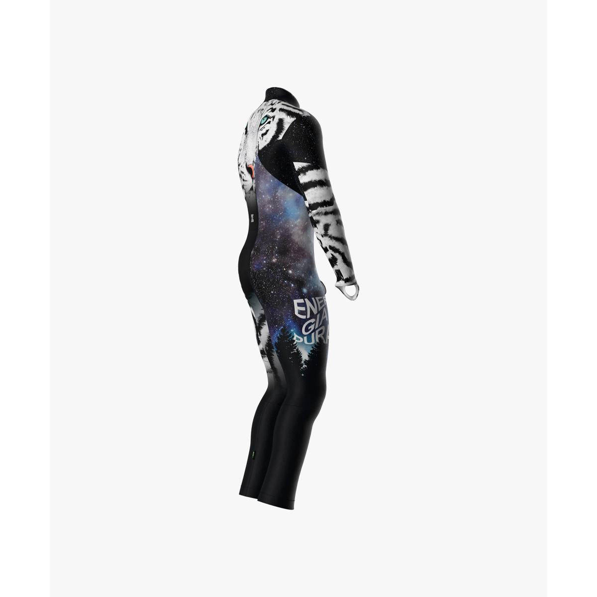 Race suit made of bi-elastic, breathable, windproof, and anti-pilling fabric. The suit's design was developed with the athlete's race positions in mind, ensuring an excellent fit, high elasticity to allow maximum freedom of movement in all positions. A zipper is inserted on the front to facilitate entry into the suit. An anti-slip silicone elastic is applied inside the leg cuff, allowing the suit to adhere better to the boot. The suit includes a skipass pocket. JUNIOR SIZES: 8-14; SENIOR: XS-XXL. SPEED: smooth fabric, not brushed on the inside