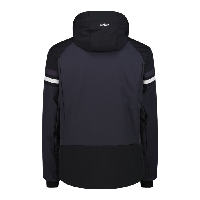 Giacca da sci da uomo CMP in tessuto twill tecnico, studiata per offrire il massimo della protezione e del comfort sulle piste. Limbottitura Feel Warm Flat assicura un efficace isolamento termico mantenendo ingombro ridotto, mentre il sistema Clima Protect, con membrana waterproof e traspirante e cuciture totalmente nastrate, garantisce una barriera affidabile contro freddo, vento e umidità. Il capo è dotato di cappuccio staccabile, zip frontale con patta antivento, coulisse regolabile in vita per una vestibilità personalizzata e ghetta antineve interna con chiusura a bottoni, pensata per impedire lingresso della neve durante le discese. Presenta tre tasche esterne due laterali e una sul polso per skipass e una tasca interna per oggetti personali. Il design a contrasto è valorizzato da due linee oblique che separano visivamente la parte superiore da quella inferiore della giacca, conferendole un look dinamico e sportivo. Una scelta tecnica e stilistica per affrontare linverno con prestazioni elevate e stile deciso.