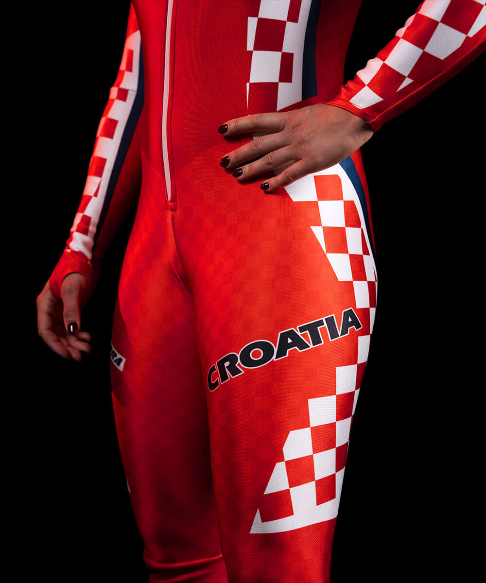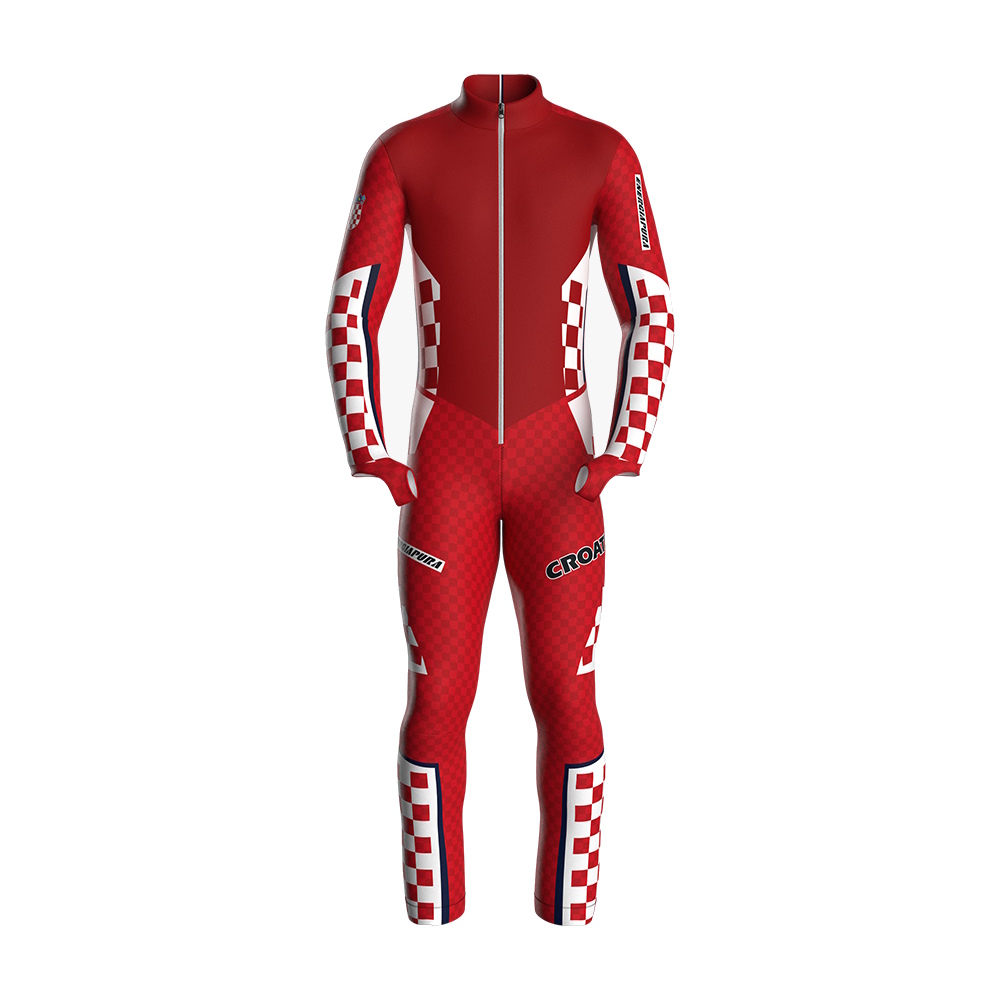 Tuta da gara con tessuto bielastico, traspirante, antivento e anti peeling. Il modello della tuta è stato studiato pensando alle posizioni che l'atleta assume in gara, garantendo un'ottima aderenza sul corpo, un'alta elasticità per dare la massima libertà di movimento in tutte le posizioni. Nella parte anteriore è inserita una zip che favorisce l'entrata nella tuta, all'interno del fondo gamba è applicato un elastico di silicone antiscivolo che permette alla tuta una miglior aderenza allo scarpone. Nella tuta si trova una tasca porta skipass. TESSUTO SPEED: tessuto liscio, non garzato internamente.