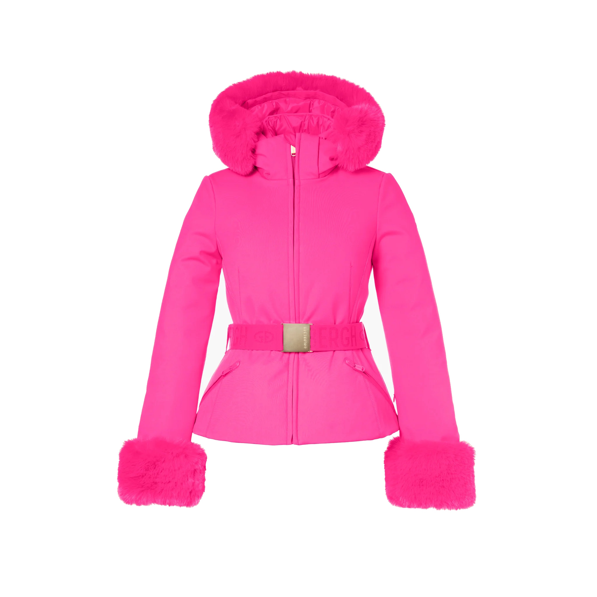 Functional softshell down jacket with hood, faux fur border and faux fur cuffs