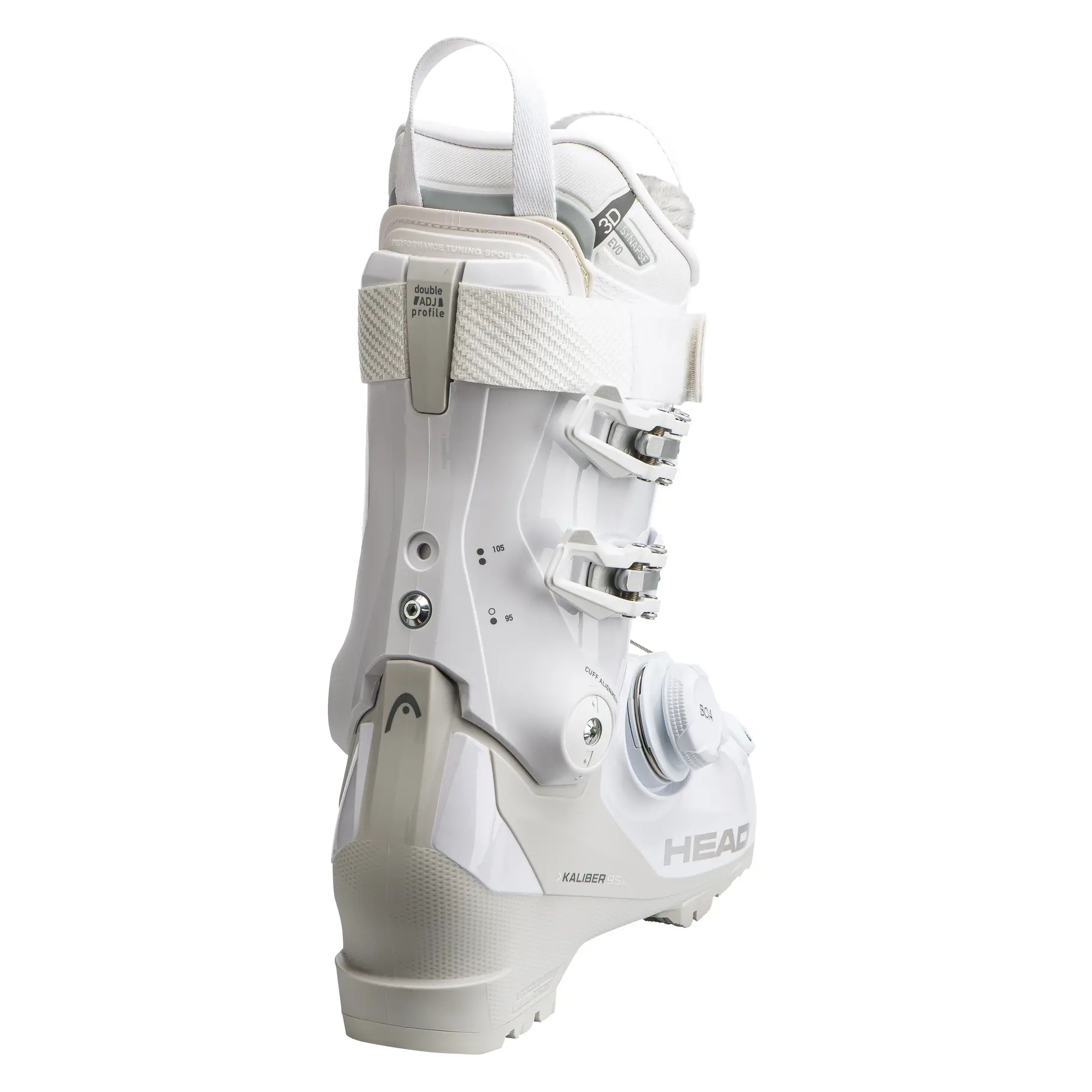 Il Kaliber 95 W MV GW BOA offre alle donne più esperte una precisione personalizzata. Progettato specificamente per integrare il sistema BOA Fit, le micro-regolazioni ottimizzano l'avvolgimento attorno a gamba e piede, mentre il gambetto e lo scafo bi-iniettati presentano una plastica più rigida nella parte posteriore per una maggiore potenza e una plastica più morbida nella parte del piede. La nuova scarpetta 3D Synapse EVO ha una forma più anatomica con una punta più spaziosa e la zona del tallone più avvolgente, mentre il sistema personalizzabile Form FIT di HEAD regola la calzata con semplici modifiche. Il grafene intrecciato nella scarpetta aiuta a regolare la temperatura quando i piedi diventano troppo caldi o freddi.