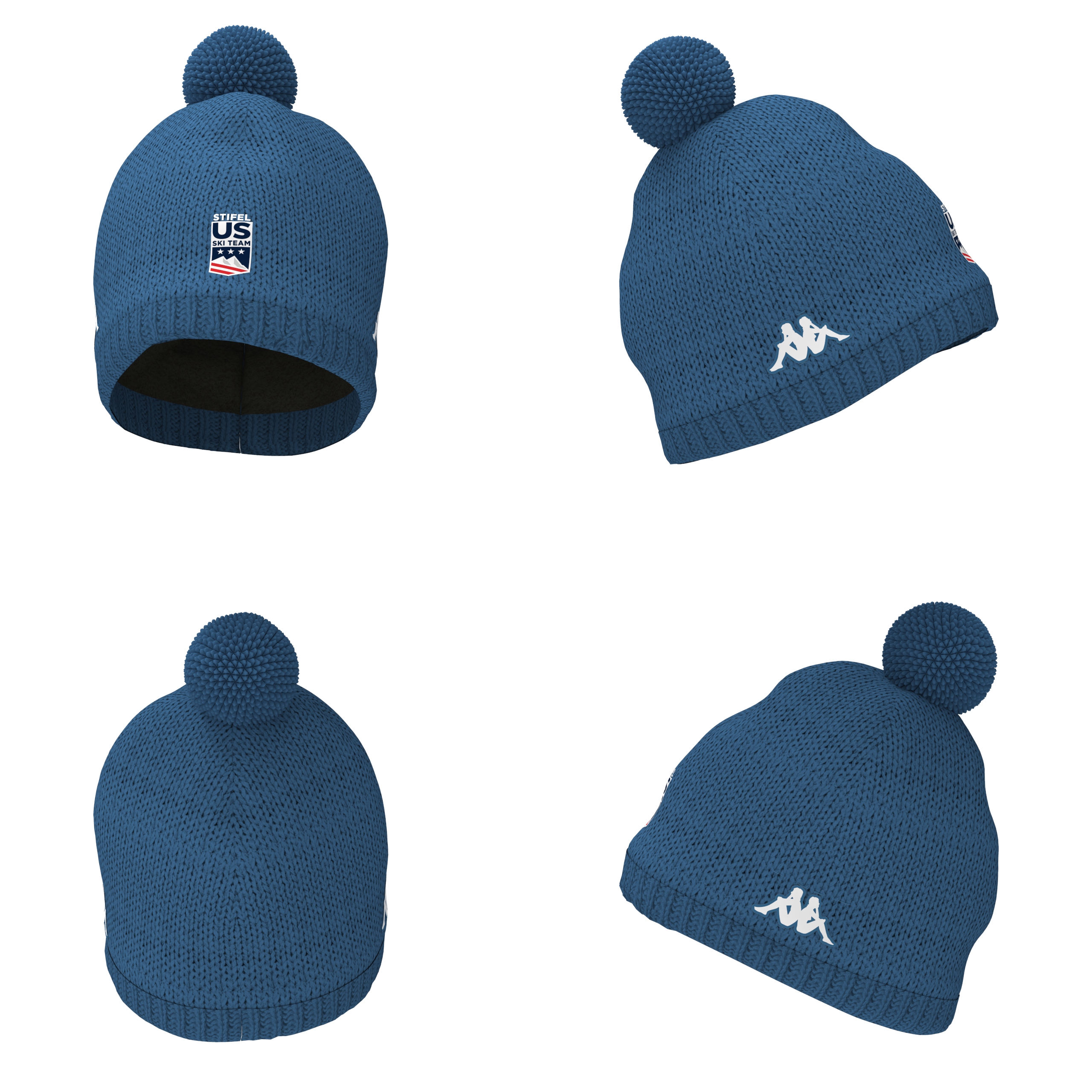 GARA. Cuculo unisex realizzato in misto lana e acrilico. Pon pon e interno in pile. Loghi Omini e personalizzazioni Team ricamati. US SKI AND SNOWBOARD.