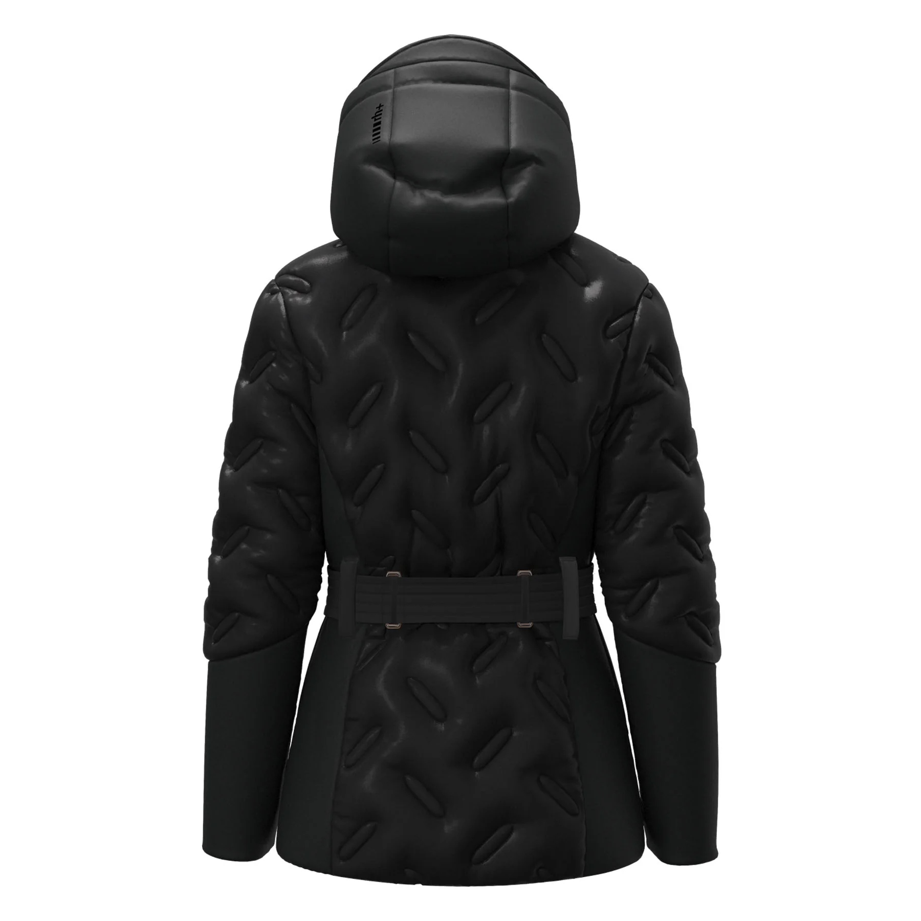 Questa giacca è realizzata in tessuto Biomorphic Eco Knt 360° Adaptive Stretch, che garantisce massima libertà di movimento e comfort. I settori incollati a zig-zag assicurano ottima termicità e impermeabilità, proteggendo efficacemente dalle intemperie. Le maniche preformate e il fondo sagomato con coulisse interna permettono una vestibilità ergonomica e personalizzata. Il cappuccio è regolabile e staccabile tramite zip e bottoni a pressione per maggiore praticità, con sistema di blocco sul retro. Le zip frontali e delle tasche sono impermeabili con tiretti personalizzati, inclusa la taschina porta ski-pass con zip invisibile. La cintura staccabile con fibbia personalizzata e regolatori sul retro aggiunge funzionalità. Polsini interni con foro per il pollice, interno collo in tessuto velour e inserto protettivo per il casco migliorano comfort e protezione. Ghetta interna staccabile e tasche interne con zip completano il capo tecnico e versatile.
