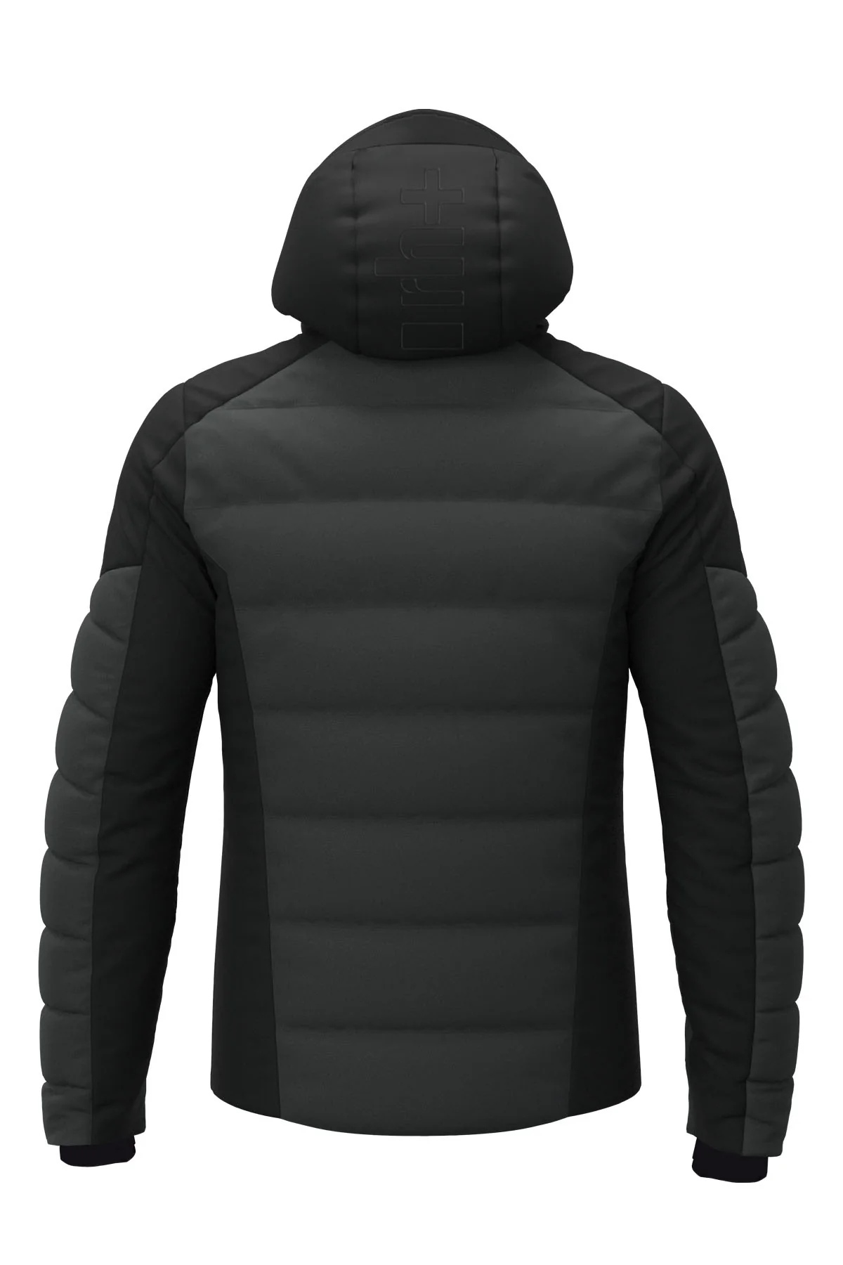 La giacca da sci da uomo è progettata per affrontare le condizioni più estreme, combinando tecnologia avanzata e comfort eccezionale. Le maniche preformate garantiscono una vestibilità ergonomica, mentre i tunnel incollati sostituiscono la tradizionale trapuntatura, assicurando una tenuta perfetta dell'imbottitura a fiocco THERMORE® GENIUS, migliorando l'impermeabilità. Il cappuccio regolabile e staccabile offre flessibilità, bloccato in posizione da un bottone a pressione nascosto. La zip frontale impermeabile con doppio cursore e camlock personalizzato, insieme alle tasche mani e petto impermeabili, assicura praticità. Con dettagli come il taschino porta ski-pass e aerazioni laterali, questa giacca è funzionale e comoda. I polsini interni con foro per il pollice, la fodera in Soft Shell e il fondo sagomato la rendono perfetta per ogni avventura sulla neve. La lunghezza di 77 cm (taglia L) e la ghetta interna antiscivolo completano il design, unendo stile e prestazioni.