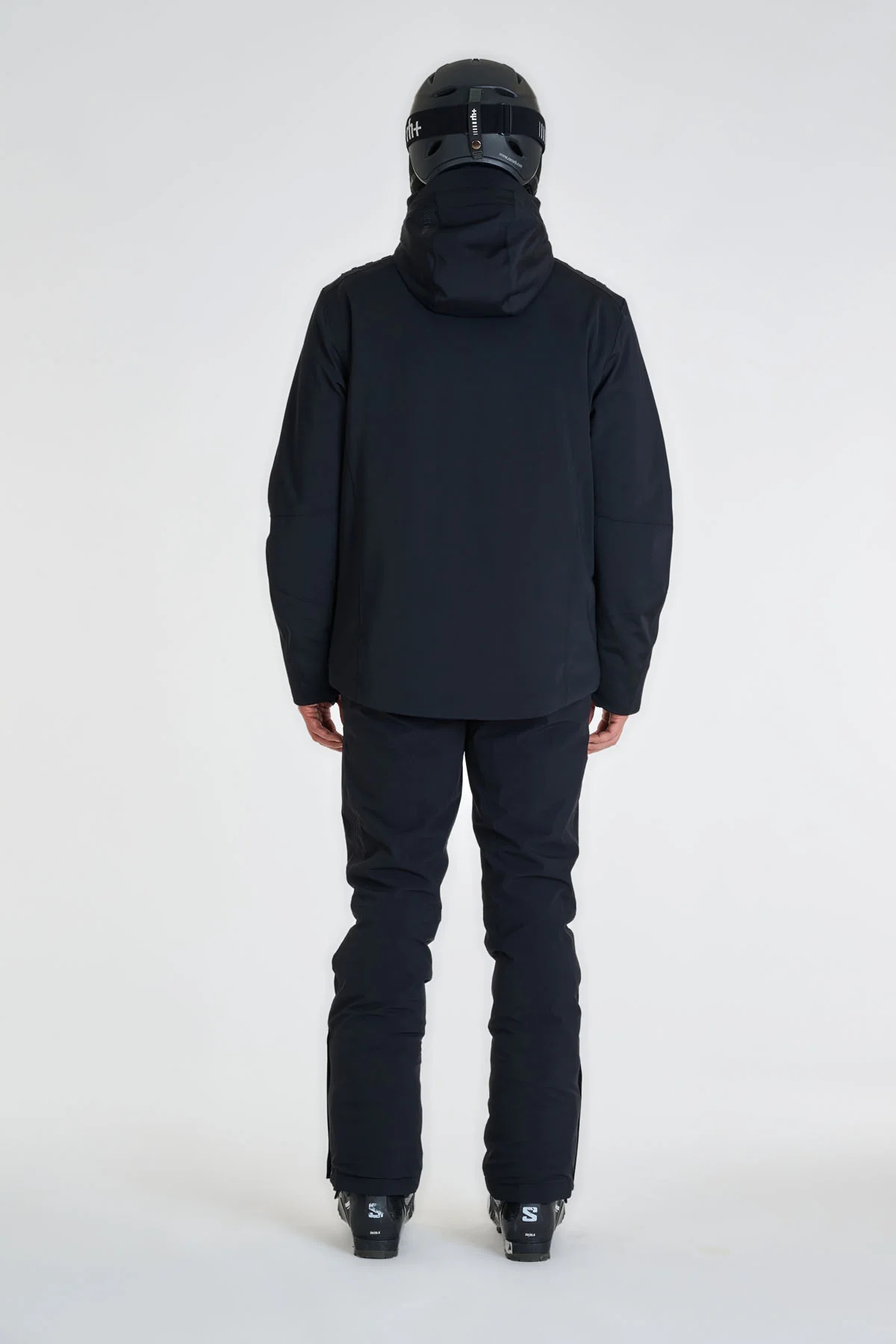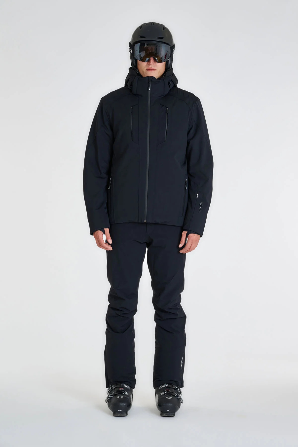 Questa giacca tecnica è realizzata in tessuto esterno Biomorphic Eco Knt 360° Adaptive Stretch, garantendo massima elasticità e comfort. Il capo è completamente nastrato per assicurare impermeabilità e protezione dalle intemperie. Le maniche preformate e il fondo sagomato con coulisse interna permettono una vestibilità ottimale e regolabile. Il cappuccio è regolabile, staccabile tramite zip posteriore e dotato di un bottone a pressione per bloccarlo sul retro. Il pesciolino in Soft Shell protegge efficacemente dal vento, mentre la zip frontale e quelle delle tasche impermeabili sono completate da tiretti personalizzati. Sono presenti aerazioni laterali con zip invisibili per una migliore traspirazione. I polsini interni hanno un foro ergonomico per il pollice. La giacca include una ghetta interna fissa con elastico antiscivolo, protezioni a rilievo sulle spalle e inserti in rete sulla schiena per facilitare il movimento. Tasche interne per cellulare e maschera completano il capo