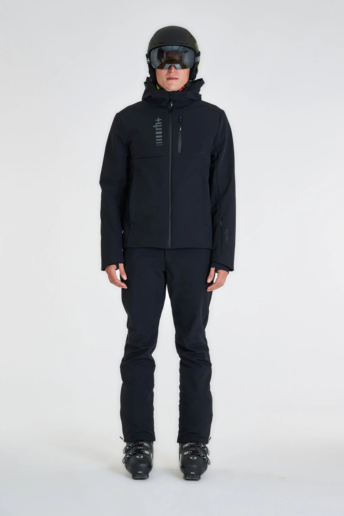 Questa giacca è realizzata in tessuto esterno Ergonomic 4 way Stretch in versione Softshell, che garantisce elasticità e comfort. Presenta maniche preformate e un fondo sagomato con regolazione tramite coulisse interna per una vestibilità personalizzata. Il cappuccio fisso è regolabile sia nella parte anteriore che posteriore, con ununica uscita sul retro, e può essere bloccato tramite bottone a pressione. La giacca dispone di zip frontale e tasche impermeabili con tiretti personalizzati, oltre a un taschino porta ski-pass con zip invisibile e tiretto personalizzato. I polsini interni hanno un foro ergonomico per il pollice, mentre linserto in rete sulla schiena facilita il movimento e migliora la traspirazione. La ghetta interna fissa con elastico antiscivolo aumenta la protezione, mentre le tasche interne offrono spazio funzionale, tra cui una tasca portacellulare con zip e una tasca porta maschera in rete con pulisci lenti staccabile.