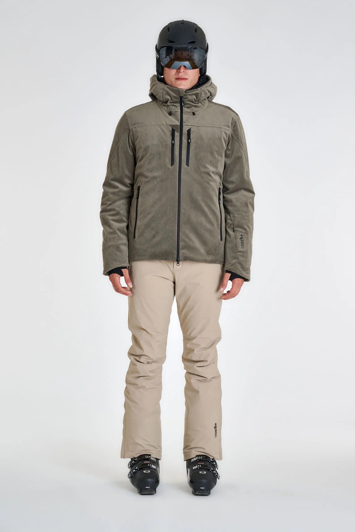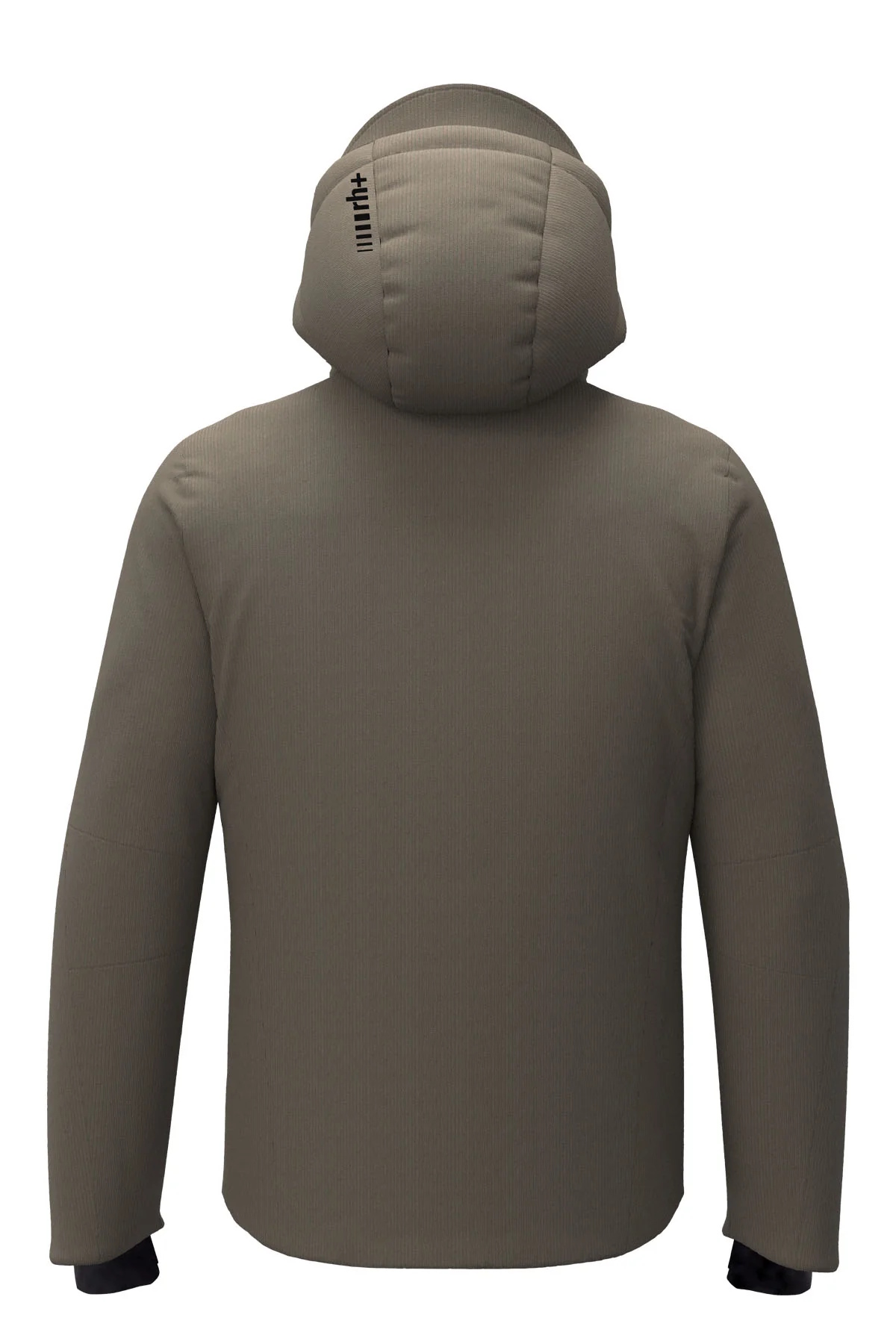 Performance tecniche ai massimi livelli abbinati ad untessuto dalla morbidezza impareggiabile oltre a tutti i dettagli tecnici di unagiacca da sci top di gamma. La massima espressione dello stile e dellatecnologia born in rh+.Il capo è completamente nastrato e dotato di maniche preformate per una vestibilità ottimale. Il cappuccio fisso è regolabile sia davanti, tramite coulisse con fermacorda logati, sia dietro con unuscita posteriore; inoltre, è possibile bloccarlo con un bottone a pressione nascosto sul retro del collo. La zip frontale, le tasche mani e quelle sul petto sono impermeabili e dotate di tiretti personalizzati. Sono presenti un taschino porta ski-pass con zip invisibile e aerazioni laterali con zip invisibile, entrambe con tiretti personalizzati. I polsini interni hanno un foro ergonomico per il pollice. La fodera personalizzata per schiena e cappuccio assicura comfort, mentre un inserto in rete sulla schiena facilita la traspirazione e lelasticità nei movimenti. La ghetta interna è staccabile e dotata di elastico antiscivolo personalizzato. Completano il design tasche interne funzionali, regolazione del fondo con coulisse interna, stampa Technology Box interna e un fondo sagomato sul dietro.